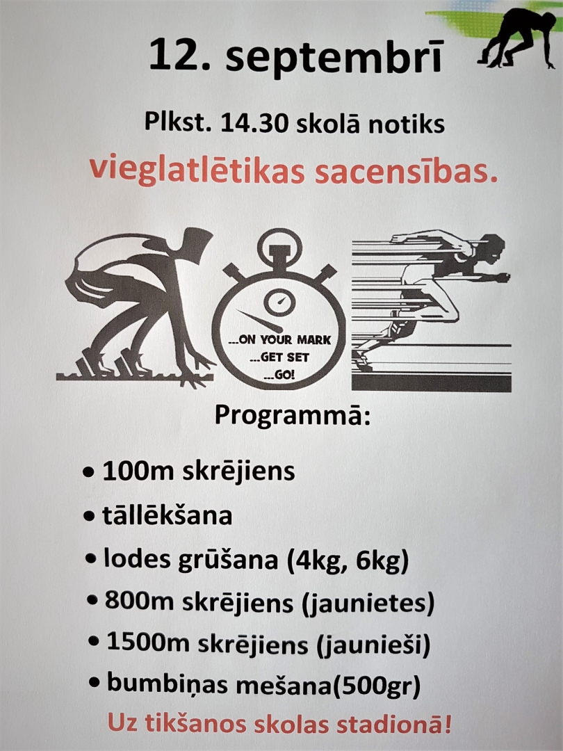 Vieglatlētikas sacensības - 12. septembrī!