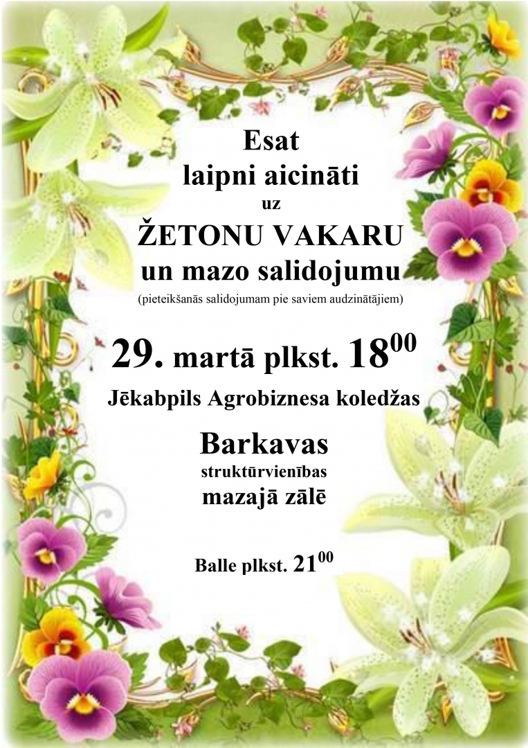 ŽETONU VAKARS un mazais salidojums