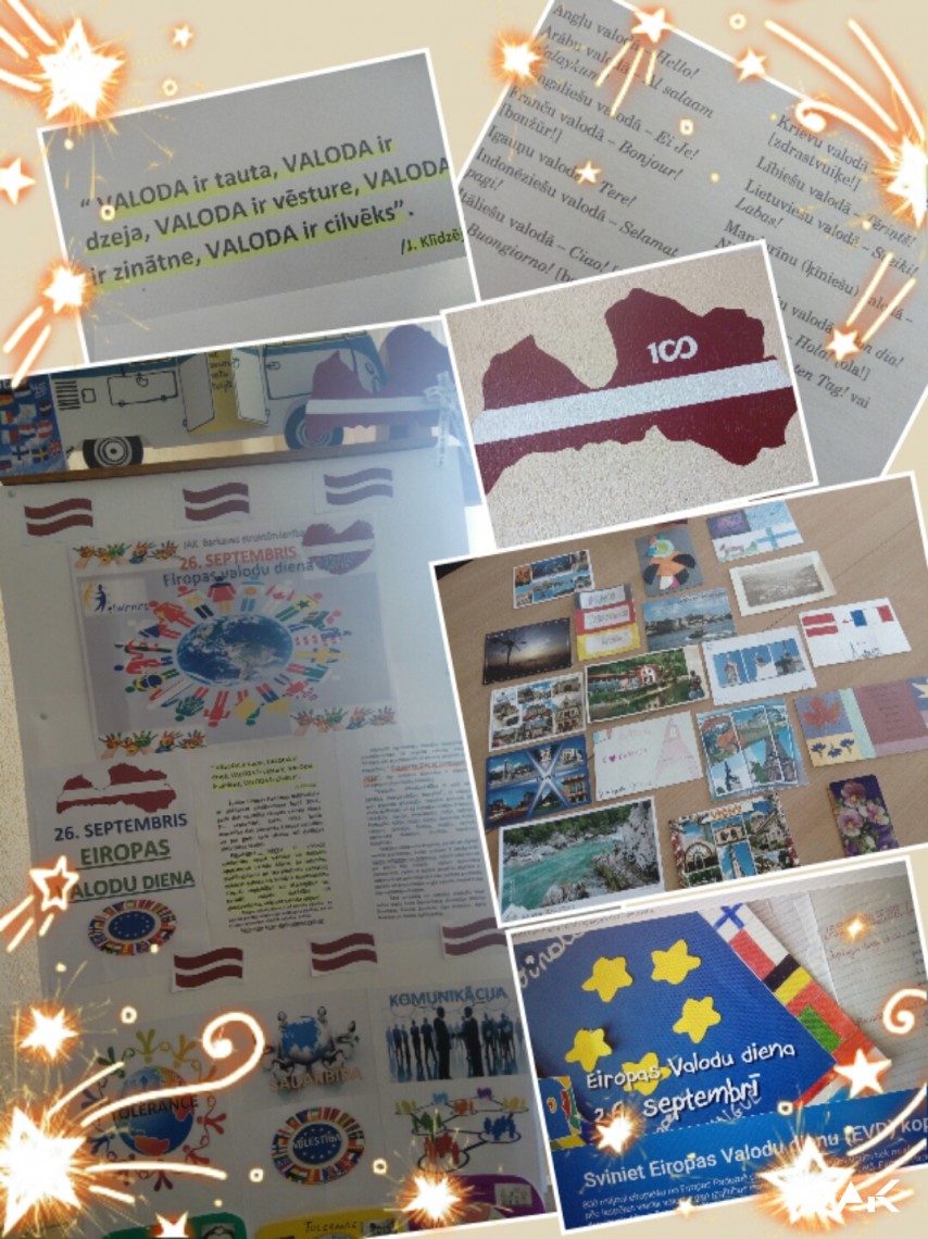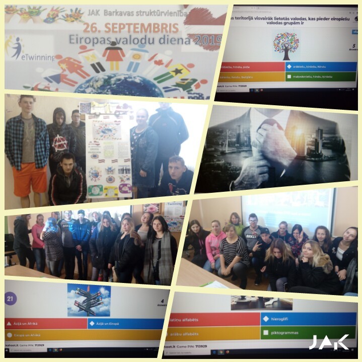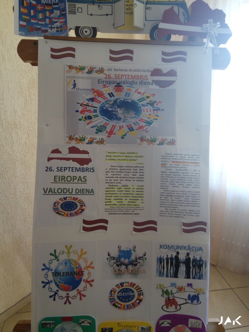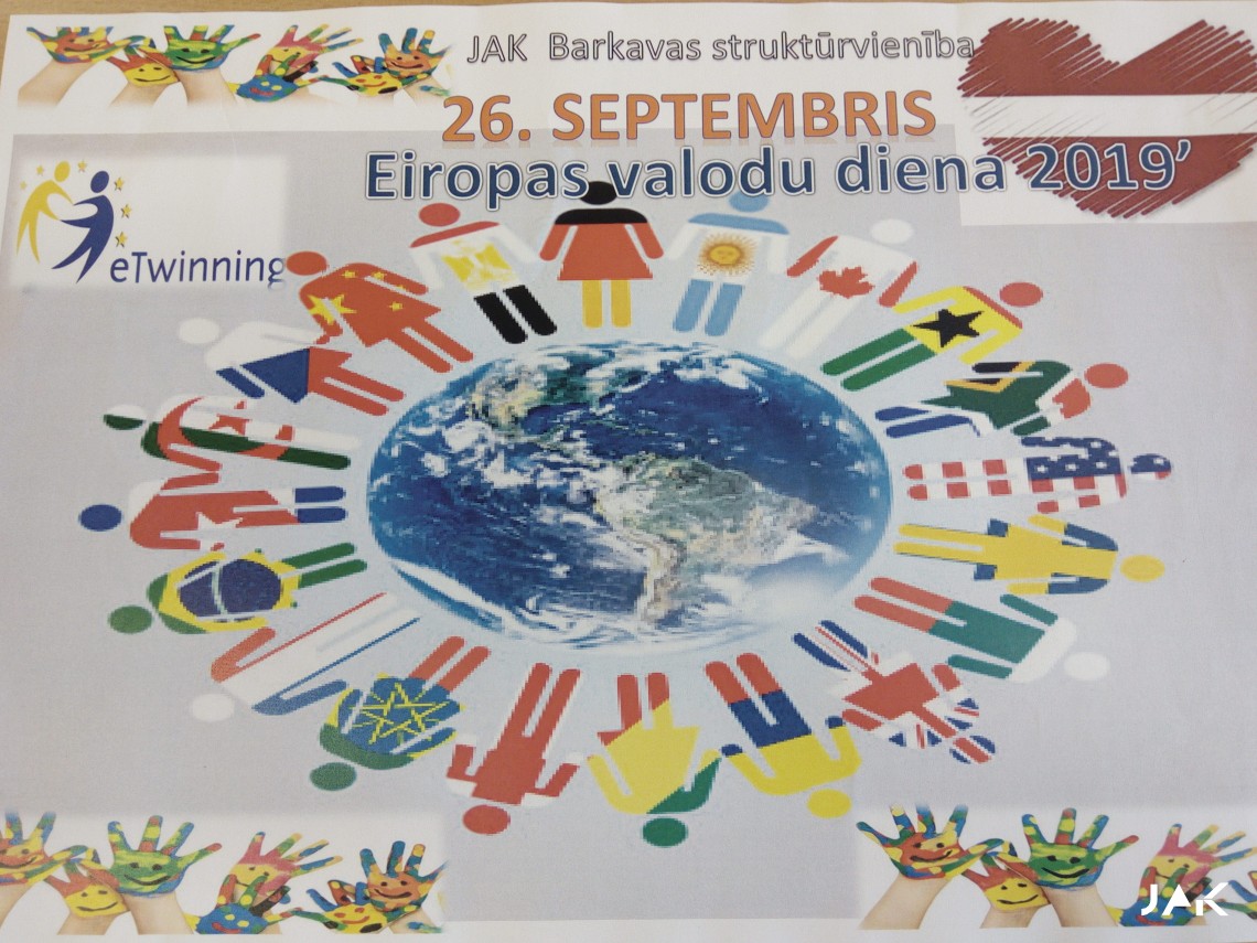 Eiropas valodu diena ir arī latviešu valodas ne tikai kā dzimtās valodas un tautas gara vērtības, bet arī Eiropas Savienības oficiālās valodas svētki. Tāpēc 26. septembrī JAK Barkavas struktūrvienības skolā jauniešiem bija iespēja piedalīties dažādās aktivitātēs saistībā ar Eiropas Valodu dienu. Izglītojamajiem šajā dienā bija iespēja pilnveidot un padziļināt izpratni par latviešu valodas lomu daudzkultūru sabiedrībā, saprast, ko man pašam nozīmē mana dzimtā valoda un identitāte, kādas ir ārzemnieku domas par Latviju, latviešiem, dzīvojot šeit, Latvijā, uzzināt daudz dažādus interesantus faktus par valodu, Eiropas Valodu portfeli, Valodas Pasi, UNESCO. Kā arī par godu Eiropas Valodu dienai Jēkabpils Agrobiznesa Koledžas BARKAVAS struktūrvienības skola no augusta mēneša aktīvi līdzdarbojas starptautiskā eTwinning projektā “European Day of Languages 2019”, kur projekta dibinātāja ir Isabelle Jassigneux (Franchville, Francija). “Valodu daudzveidība ir ceļš uz labāku starpkultūru izpratni”, tā uzskata pati projekta dibinātāja. Projektā darbojās 60 skolu dalībnieki no 22 dažādām valstīm (Francija, Horvātija, Turcija, Maķedonija, Polija, Spānija, Portugāle, Itālija, Vācija, Čehija, Rumānija, Polija, Lietuva, Grieķija, Somija, Beļģija, Serbija, Apvienotā Karaliste, Austrija, Slovēnija, Bulgārija, Latvija).