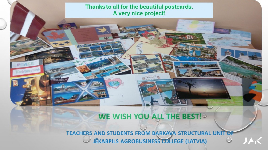 Izglītojamajiem bija iespēja veikt dažādus atraktīvus digitālos e-uzdevumus, sagatavot digitāli informāciju, vizītkarti par savu valsti, lai citu valsts skolu partneri labāk iepazītu mūsu valsts kultūru, tradīcijas, simbolus, un gala rezultātā veidot pastkaršu izstādi un prezentēt savus darbus, kā arī pilnveidoja prasmes darboties TwinSpace platformā. Projekta darbība notika no augusta līdz oktobra mēnesim. Šajā eTwinning projektā no Latvijas piedalījās tikai mūsu skola, kurā sadarbojās dažādu priekšmetu skolotājas Mairita Smeltere, Raivita Sondore, Līga Krūmiņa un skolas izglītojamie.