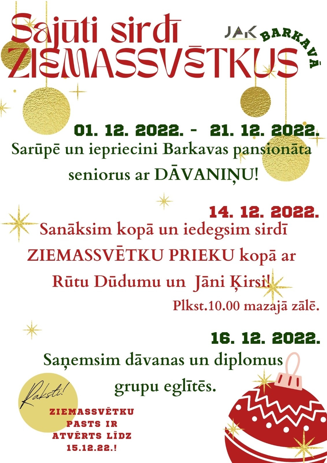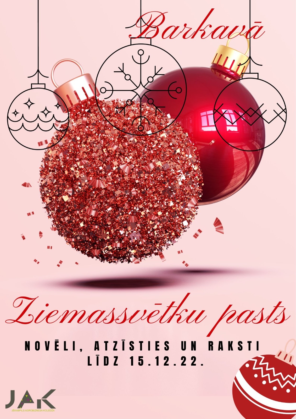 LĪDZ 15.DECEMBRIM, SKOLAS 1.STĀVĀ BŪS PIEEJAMS ZIEMASSVĒTKU PASTS!!!