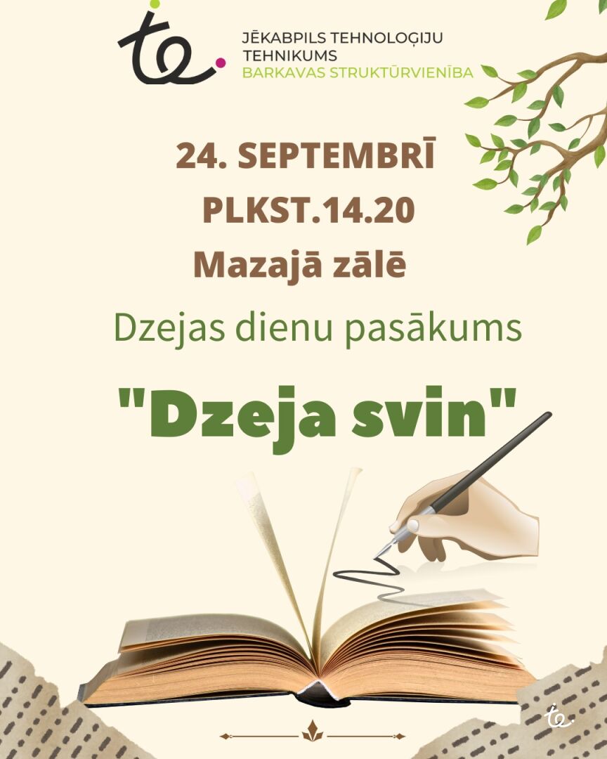 Pievienojies Dzejas dienu pasākumā, kas norisināsies JTT struktūrvienībā Barkavā, Mazajā zālē, 24.09.2025. plkst.14.20