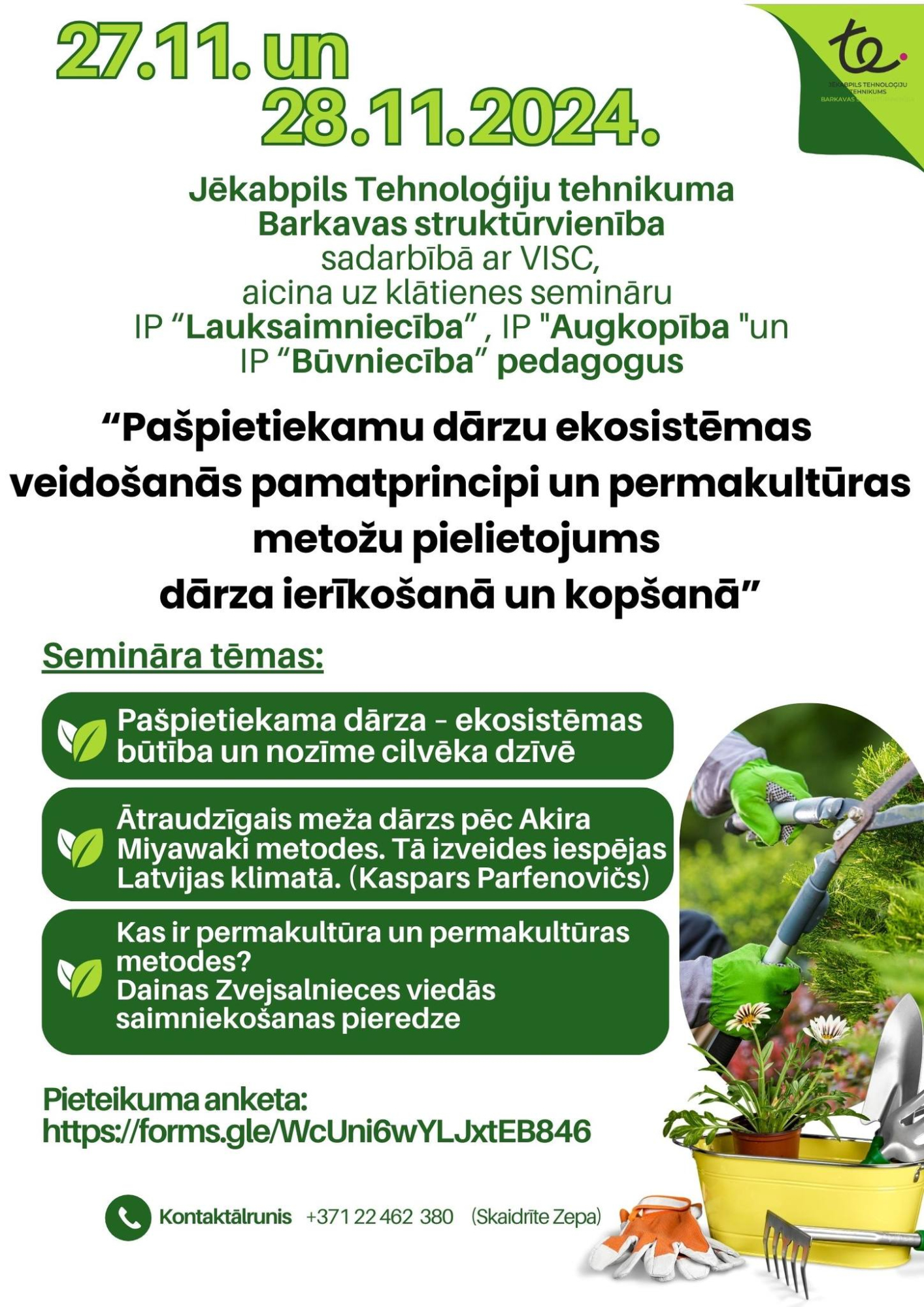 27.11.2024.-28.11.2024. JTT Barkavas struktūrvienība sadarbībā ar VISC organizē klātienes semināru pedagogiem- IP "Lauksaimniecība", IP "Būvniecība", IP "Augkopība".