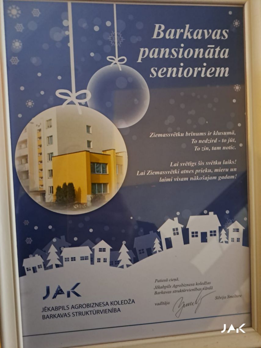 Ir noslēgusies Jēkabpils Agrobiznesa koledžas Barkavas struktūrvienībā organizētā Ziemassvētku labdarības akcija, kuras laikā ikviens struktūrvienības izglītojamais un darbinieks, tika aicināts sagādāt nelielu dāvaniņu Barkavas pansionāta senioriem. 22.decembrī visas sarūpētās dāvanas tika nogādātas Barkavas pansionātā, lai šajos svētkos prieks iemirdzētos katrā seniora sirsniņā.
