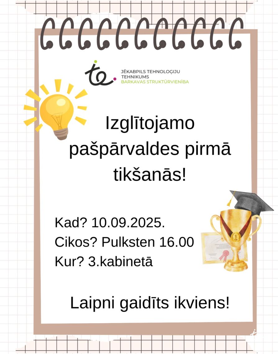 Tikšanās notiks 10.09.2025. JTT struktūrvienības Barkavā mācību ēkā 3.kabinetā (1.stāvā) plkst.16.00.