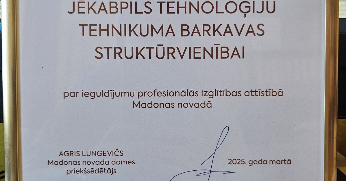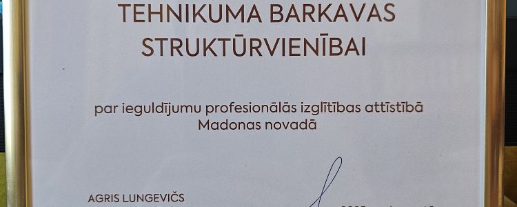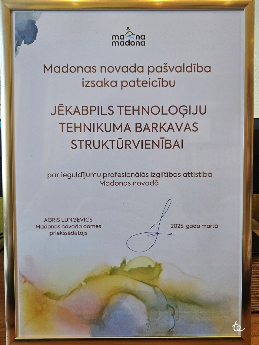 Madonas novada pašvaldība sadarbībā ar LLKC Madonas biroju jau kā ierasts aicināja Madonas un Varakļānu puses zemniekus un lauksaimniekus uz Lauksaimnieku balli 2025. Šajā svinīgajā pasākumā tikām godināti arī mēs - Barkavas struktūrvienība, saņemot pateicības rakstu par ieguldījumu profesionālās izglītības attīstībā Madonas novadā.