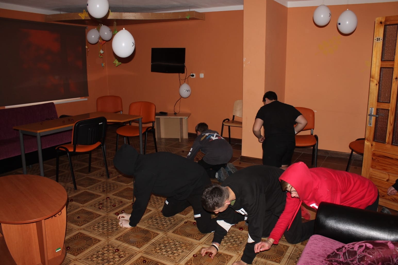 Audzēkņi piedalījās gan individuālās sacensībās, piemēram, tumšā telpā, esot rāpus pozīcijā, minūtes laikā vajadzēja salasīt no grīdas pēc iespējas vairāk kastaņu, gan komandu stafetēs.