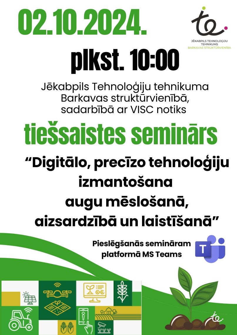 JTT Barkavas struktūrvienība sadarbībā ar Valsts izglītības satura centru, platformā Teams, pedagogu profesionālās kompetences programmas ietvaros, organizē tiešsaistes semināru