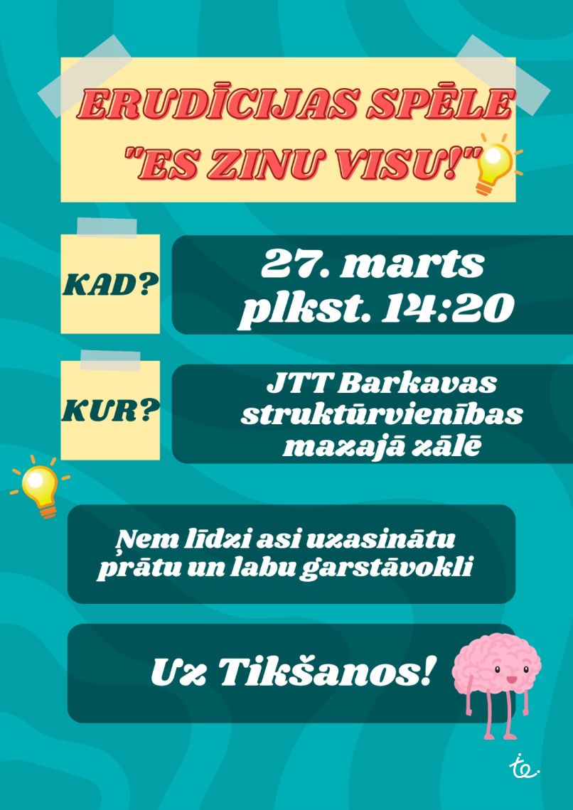 27.martā skolas mazajā zālē plkst.14.20 nāc un piedalies erudīcijas spēlē "Es zinu visu" .