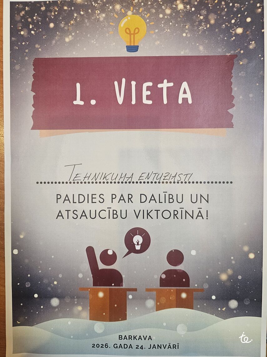 24.01.2026. JTT struktūrvienības Barkavā skolotāji pārstāvēja skolu Barkavas pagasta Kultūras nama rīkotajā viktorīnā, kas bija par godu barikāžu 35.gadadienai. Līdzīgi kā pagājušajā gadā, arī šogad skolas kolektīvs ieguva godalgoto 1.vietu četru komandu konkurencē.